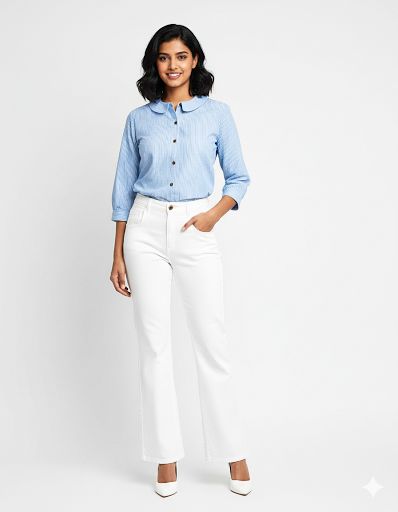 Women Blue Striped Cotton Shirt Top with Peter Pan Collar