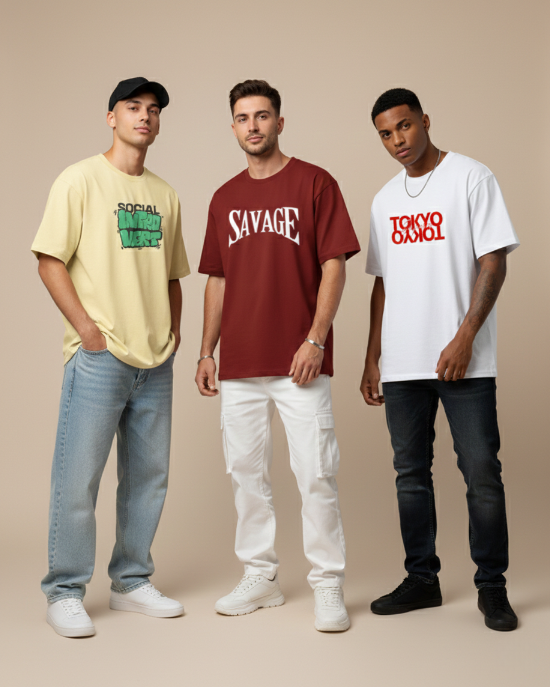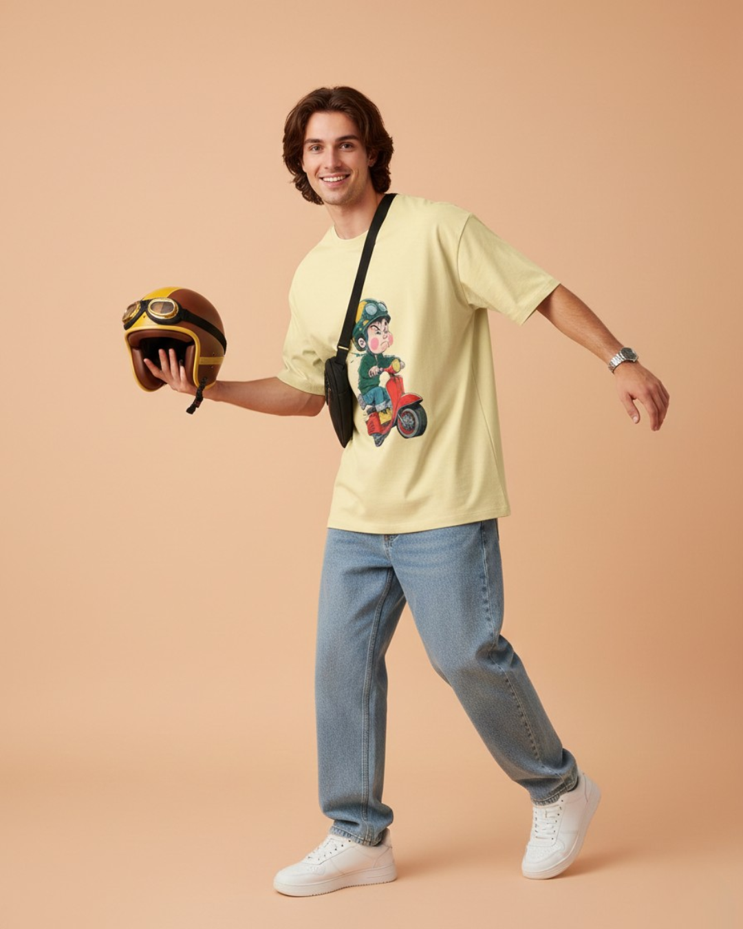 Retro Scooter Boy Beige Oversized T-Shirt