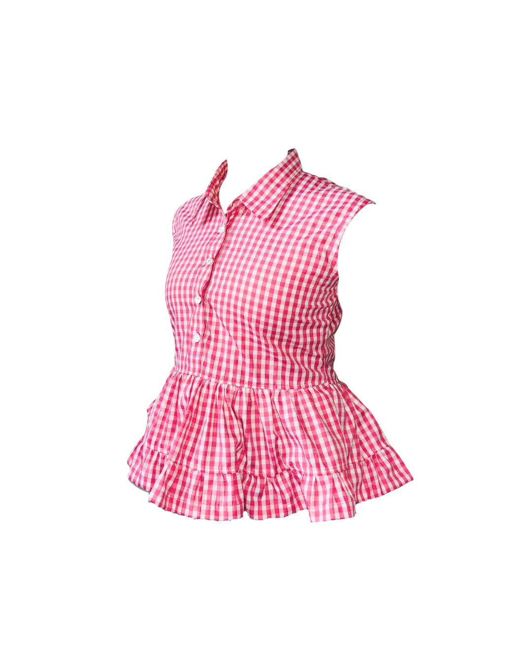 Fabric: Cotton Pattern: Checked Net Quantity (N): Upgrade your summer style with this trendy pink gingham peplum top! Soft cotton fabric, comfy fit and stylish collar design make it perfect for college, daily wear and outings. Pair it with jeans, shorts or skirts for a cute Korean-style look. Must-have Western top for modern girls! Country of Origin: India