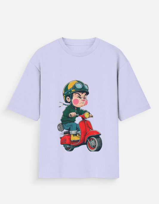 Retro Scooter Boy Beige Oversized T-Shirt